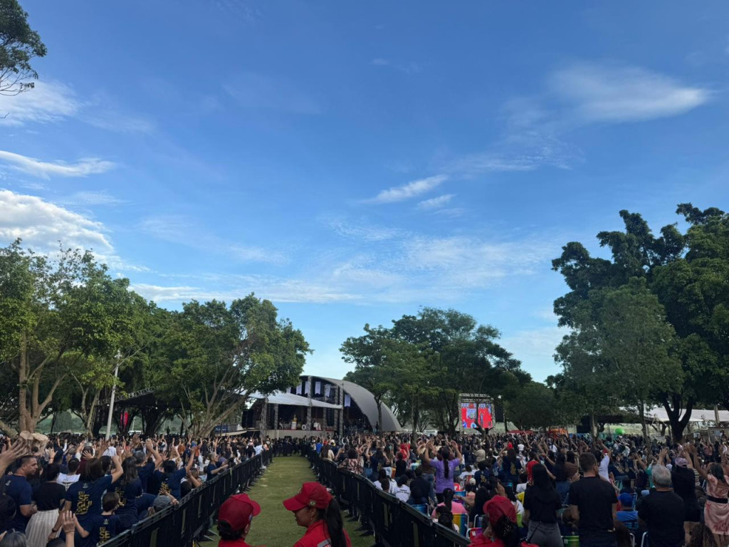 No período da manhã, o cenário mudou rapidamente: uma multidão tomou a área do Santuário, lotando a estrutura montada para a celebração. Pessoas de várias cidades de Mato Grosso do Sul e de outros estados acompanharam o show ao ar livre.