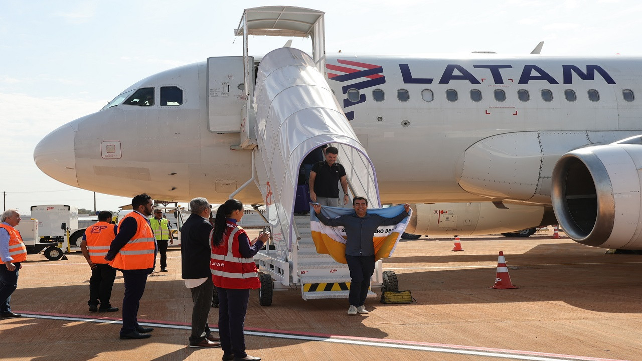 Dourados viveu nesta segunda-feira (8) um momento histórico. Após mais de quatro anos de espera, o Aeroporto Regional Francisco de Matos Pereira voltou a receber voos comerciais regulares e o melhor: ligando o município aos principais destinos do Brasil e do mundo. O primeiro pouso da Latam Airlines ocorreu às 8h25, com cerca de 90% de ocupação. A aeronave Airbus A319, com capacidade para 144 passageiros, decolou de volta para o Aeroporto Internacional de Guarulhos às 9h40, conectando novamente a cidade ao maior hub aéreo da América Latina.