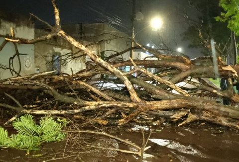 Uma forte tempestade atingiu Dourados na noite desta sexta-feira (16), provocando quedas de árvores, galhos espalhados por vias públicas e danos pontuais em residências, especialmente na região noroeste da cidade. De acordo com a Defesa Civil, as rajadas de vento podem ter alcançado cerca de 100 km/h, conforme os danos observados após o temporal.