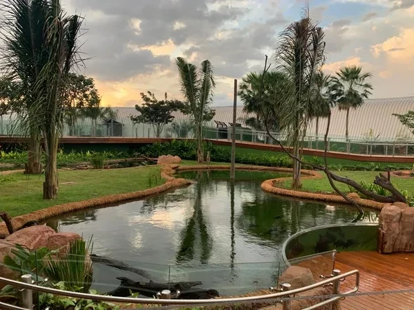 Com 21 mil metros quadrados de área construída, o Bioparque Pantanal impressiona pela arquitetura assinada por Ruy Ohtake, que fez um teto inspirado em escamas de peixe, símbolo da conexão entre o prédio e a paisagem pantaneira.