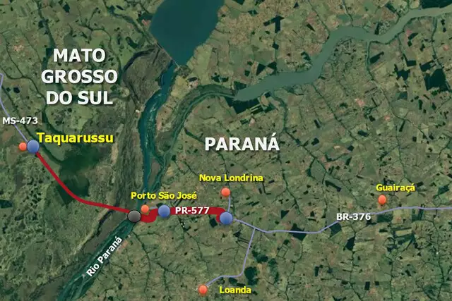 A proposta prevê a construção de uma ponte de aproximadamente dois quilômetros sobre o Rio Paraná, conectando diretamente Porto São José ao município de Taquarussu. O projeto foi elaborado pela Associação Comercial de Maringá e é considerado estratégico para a logística regional.