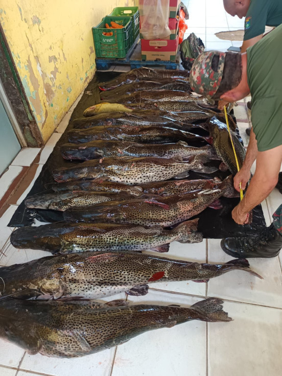 Além dos peixes, foram confiscados dois veículos utilizados no transporte, uma embarcação, dois motores de popa de 50 HP, além de roupas de mergulho e arpões.