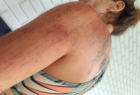 Ao retornar, houve um desentendimento no momento do pagamento, ela pediu ao filho para trazer o dinheiro. O motorista não gostou, arrancou com o veículo em alta velocidade enquanto a mulher ainda segurava a criança no colo, chegando a arrastá-las pela via. O homem fugiu levando o celular da vítima.