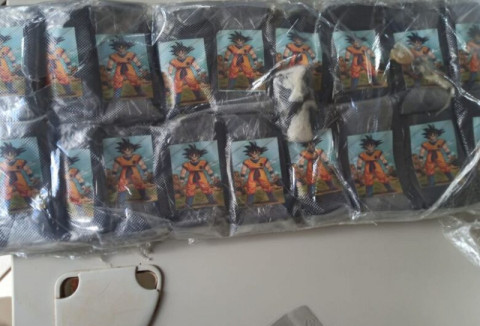 A PRF (Polícia Rodoviária Federal) apreendeu 2,15 kg de um tipo de “supermaconha” conhecido como “Ice”, em Ponta Porã, em um ônibus que fazia linha até Campo Grande. O entorpecente estava embalado em tabletes adesivados com imagens do Goku, um dos mais populares personagens de anime e mangá.
